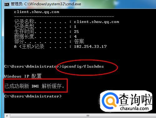 然后再输入“ipconfig /flushdns”,可以清理电脑的dns解析缓存。