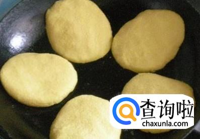 热锅起油,用手抓适量的粉团压成小饼,放置锅里用小火煎。