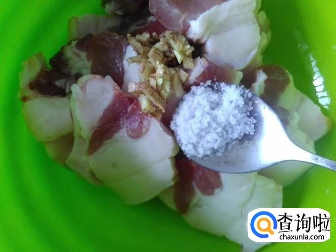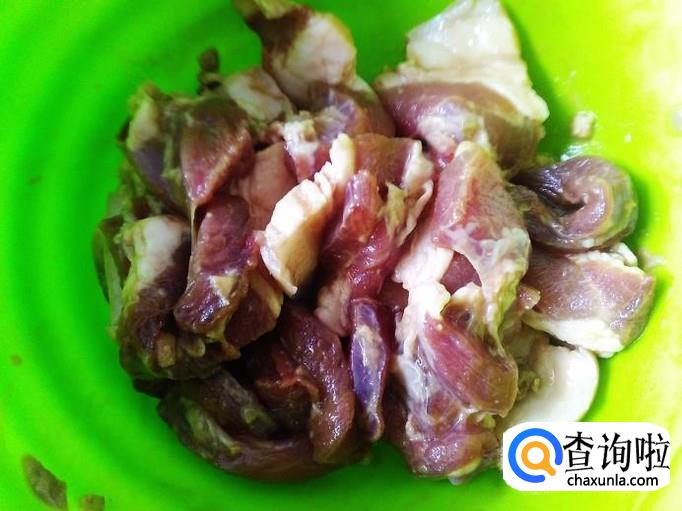1勺料酒、1砖腐乳用手抓捏均匀,腌制几分钟。