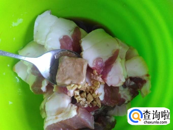五花肉250克,腐乳1砖,姜蓉,1勺生抽,1勺料酒。
