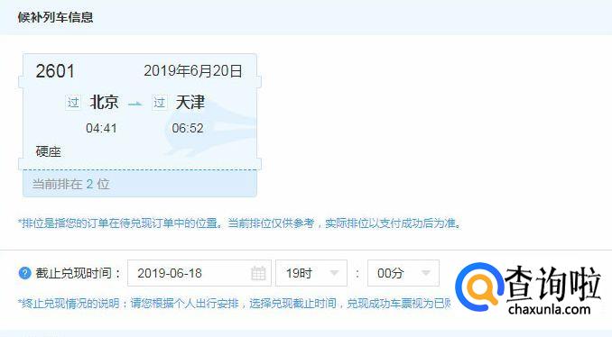选择候补购票的旅客,需填写截止兑现时间,然后提交候补订单。