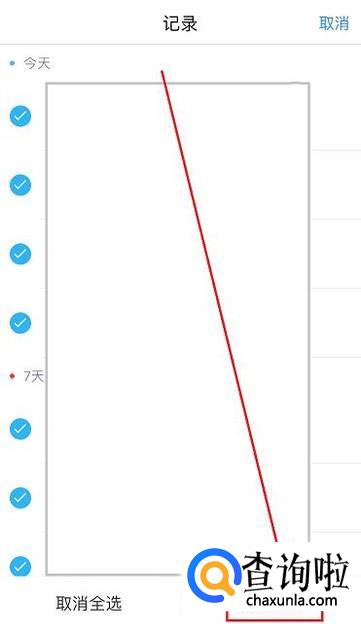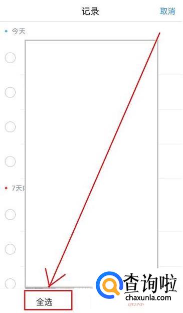 在想要删除的观看记录前面的圆圈内打“√”,或者直接点击左下方的“全选”按钮,选中全部的观看记录。