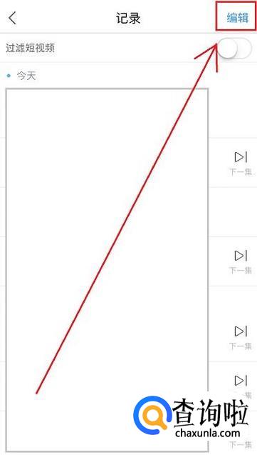 进入观看的历史记录界面后,点击屏幕右上角的“编辑”选项。