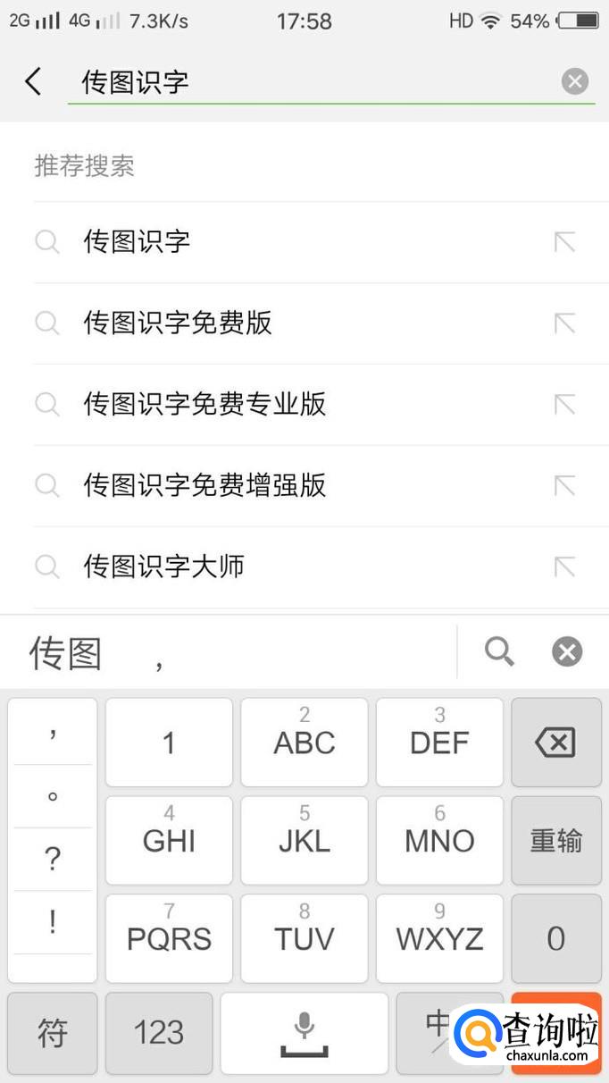 进入之后,在搜索框搜索“传图识字”,进入下一界面,如图所示。