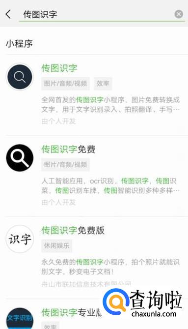 选择一个小程序,点击并进入,在这里以“传图识字免费”为例,如图所示。