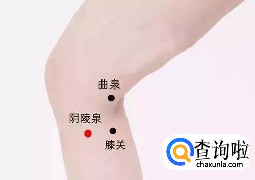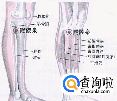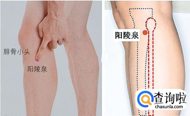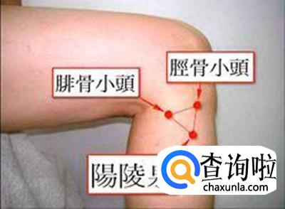 阳陵泉穴位于人体的膝盖斜下方,小腿外侧之腓骨小头稍前凹陷中。(即:在小腿的外侧,膝关节下方的外侧有一个高点(腓骨小头),从高点的前下方大概一寸左右有一个凹陷。)
