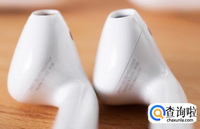 如果仔细观察耳机,可以发现二代AirPods本体上印着ID、型号和序列号三行字符,而左侧的一代只有两行。