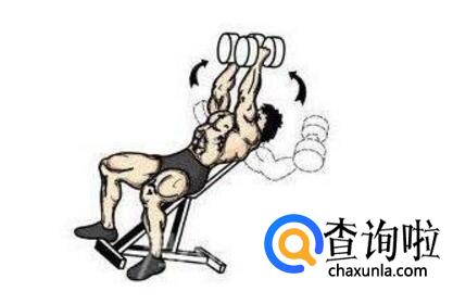 1、仰卧在上斜凳(宽20~25厘米)上,双手持铃,掌心相对。上背部紧贴凳子,脊椎保持生理弯曲,核心收紧!2、下放时将注意力集中在上胸缝位置,依靠胸肌纤维拉伸的张力控制哑铃下放,主动吸气、挺胸。3、上举时要靠胸肌的收缩带动双臂向上环抱,注意集中在胸部肌肉,感觉胸肌被拉扯和收缩,为了使动作更加准确,可想像去抱一课大柱子,做此动作时不断在心里念着“抱住它!抱住它!”锻炼次数:以8~15次/组为宜。第一组应为15次左右,然后做3组10~12次,最后一组可降至8次,一共完成5组左右。注意:1、不要强求重量,否则肩部过分用力紧张,使整个动作变形。2、在哑铃下放时,要将注意力集中在胸缝位置。
