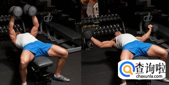 1、仰卧在平的卧推凳上,两手各持哑铃,掌心相对,推起至两臂伸直,支撑在胸部上方。2、两手持哑铃平行地向两侧落下,手肘稍微弯屈,哑铃落下至感到胸部两侧肌肉有充分的拉伸感,并使上臂落下至低于肩部水平线。当哑铃落下时,要深深吸气。持铃循原路举起回原位时呼气。锻炼次数:以8~15次/组为宜,一共做5组。注意:1、下放哑铃时注意力集中在胸缝处,靠胸肌的张力控制住哑铃缓慢下放,同时充分吸气、挺胸,幅度要完全到位,这样对胸肌中间的沟锻炼效果更好。2、上举时要靠胸肌的收缩带动双臂向上环抱,直至哑铃相触,这样可避免肩背过分参与用力。