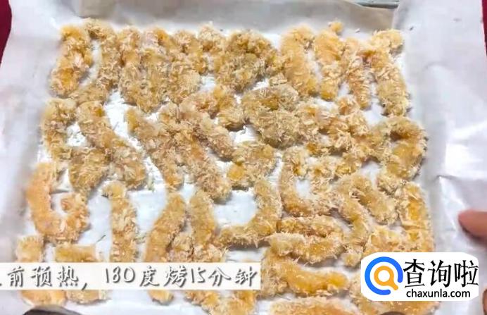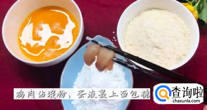 准备一个鸡蛋打散。然后把鸡肉条先沾面粉,再裹上鸡蛋液,最后裹上面包糠。