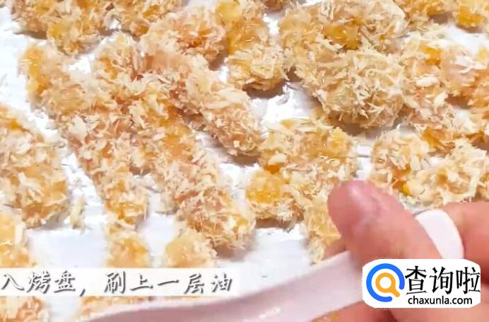 把处理好的鸡肉条放在烤盘上,刷上一层油。