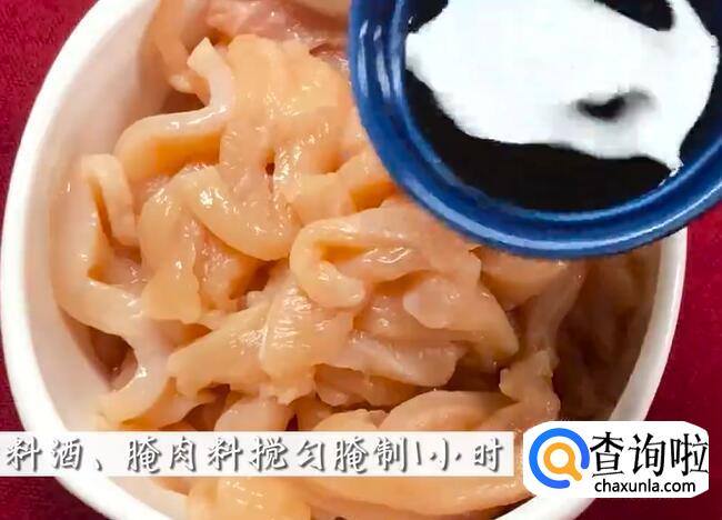 加入料酒、腌肉料后搅匀,腌制一小时。
