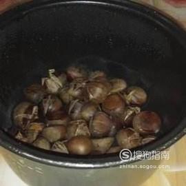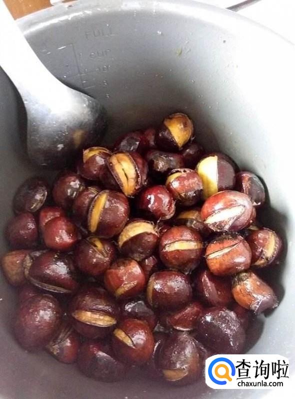 放好材料后加盖,按下煮饭开关,开始煮栗子等电饭锅跳起保温时,看一下时间大约3-5分钟就可以了,这样香甜的栗子就做好了。
