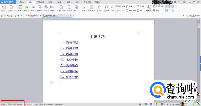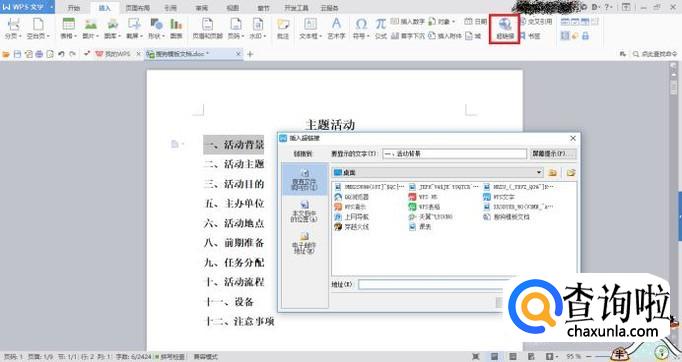 选中“一、活动背景”,点击超链接