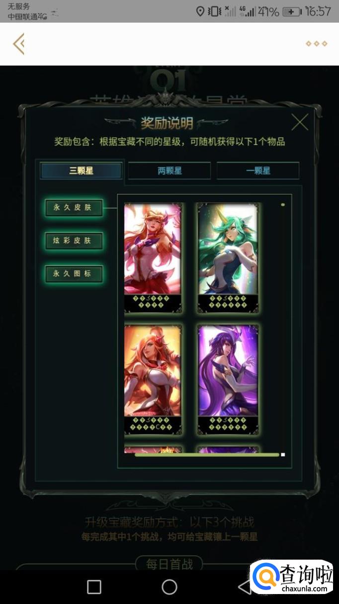 比尔吉沃特宝藏活动在拥有一颗星之后就可以领取奖励,星级越高奖励越丰富,收集满三颗星之后可获得永久,炫彩皮肤还有图标