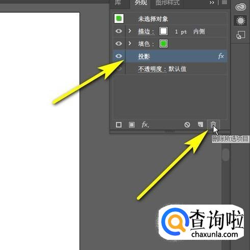 鼠标回到外观面板,再点击“投影”,选中它;然后点击右下角的删除按钮。