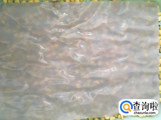 过两三天后,打开育苗纸,看到豆芽有三四厘米长,就可以把上面那层育苗纸去掉,并把育苗盘放到有阳光的地方。