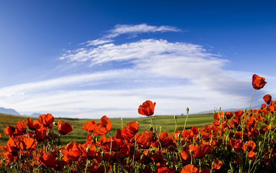22、在风的吹拂下,满山满坡的野花睁开了眼,一朵两朵,一丛两丛……连成片,汇成海。人们面对这蓝的红的黄的……气势磅礴的色彩的海洋,烦恼没有了,萎靡没有了。