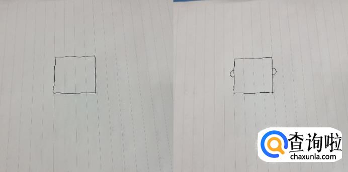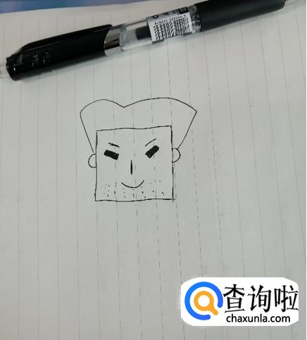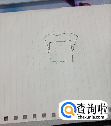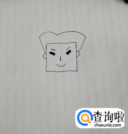 爸爸形象较严格,所以我们用方脸表示,在纸上画一个正方形,在两边画上耳朵。