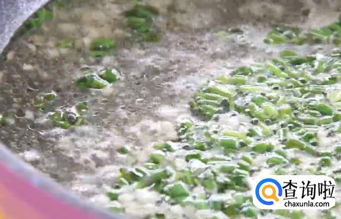 热锅起油,将切好的蒜末和葱段倒入进去炒香,再将鸡汤倒入进去,熬煮一下。