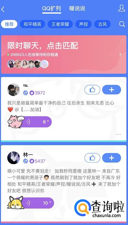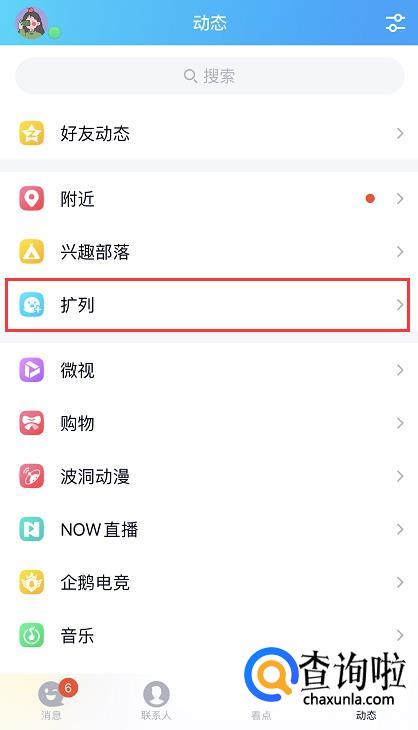 进入动态页面后,我们可以在页面上看到“扩列”,点进入之后可以看到扩列的动态展示。