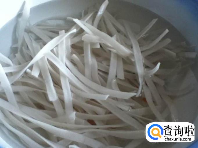 然后我们需要把粉条提前用清水清洗浸泡,豆腐用刀切成一片一片的备用。