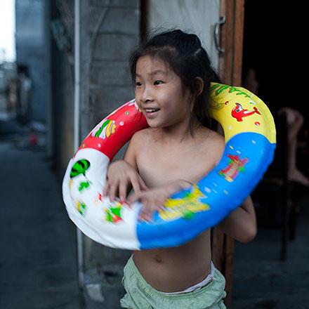 女孩第一次学游泳