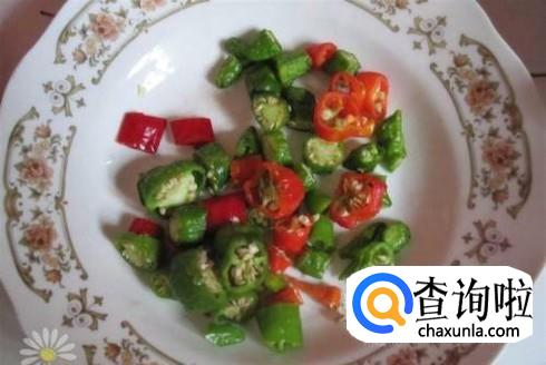 青辣椒,红辣椒切成小节,装盘备用