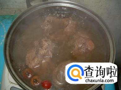 将牛肉在白水中煮熟