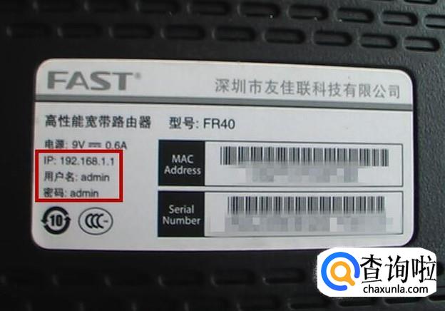 打开浏览器,输入192.168.1.1,回车。IP地址、用户名称和密码都可以在无线路由器的背面查看。