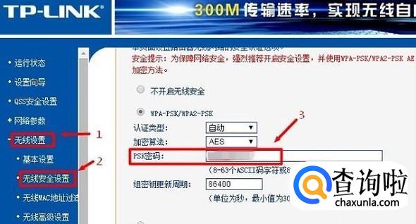 在设置页面选择无线设置,在无线设置中找到无线安全设置,点击WPA-PSK/WPA2-PSK,在PSK输入要修改的密码,完成后点击保存,修改成功!