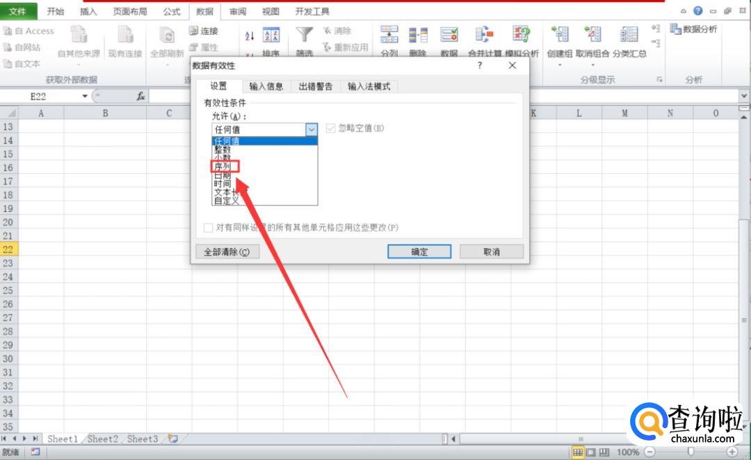 然后我们将允许任何值更改为【序列】。