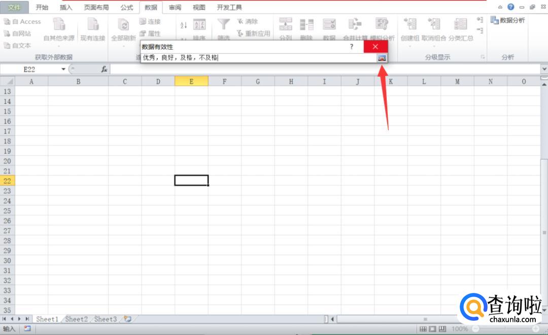 在出现的来源框中,输入要设置的选项,例如:【优秀】【良好】【及格】【不及格】,然后我们点击【确定】。