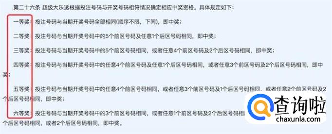 大乐透设置了6个等级的奖。大奖当然就是全部号码全选中了。