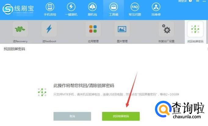 对于经常刷机的朋友都比较了解刷机软件也会自带解锁图案密码的功能,这里我们会用到“线刷宝”这款刷机软件,我们可以自行下载安装。