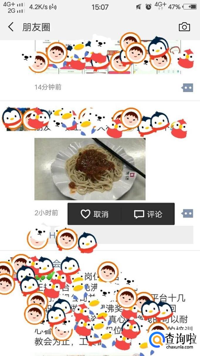 紧接着我们在里面找到自己要取消点赞的朋友圈,如果要取消点赞的话,我们点击下方的小方框,再点击爱心出的取消即可。