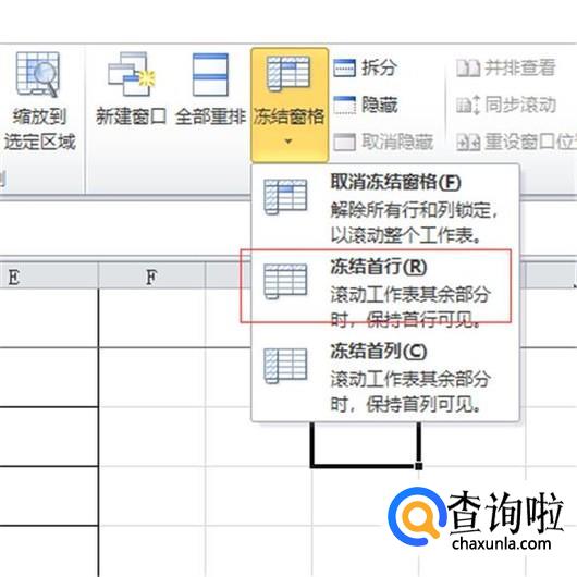 打开“冻结窗口”,找到"冻结首行”,见下图