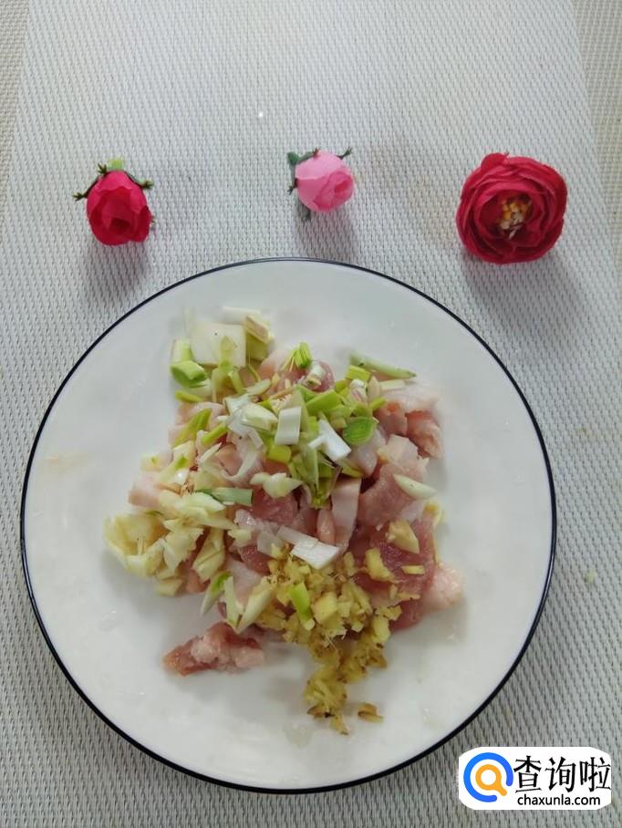 准备适量葱,姜,蒜,洗净后,切碎,放入适量盐,鸡精,五香粉,生抽,料酒搅拌均匀。腌制15分钟。