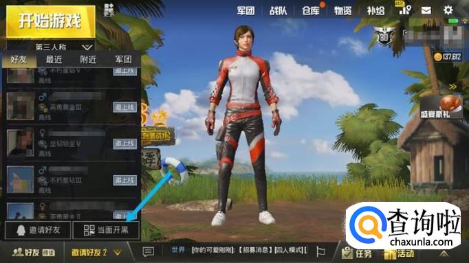 和好友吃鸡时,可以点击“当面开黑”,让他扫码组队,快速开局吃鸡。如图所示。