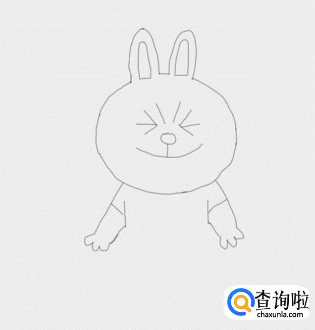 在画好的头部下面画出可妮兔的两只胳膊及手部,如图所示:
