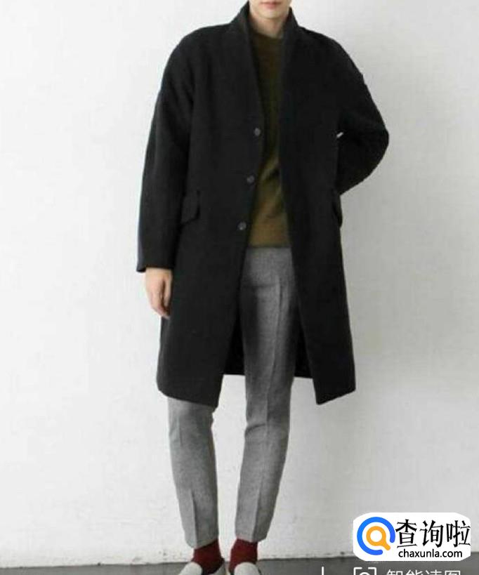 黑色的大衣,里面搭配一件颜色比较暗沉的棕色毛衣,再选择一条浅西裤风格的灰色裤子,搭配一双皮鞋。