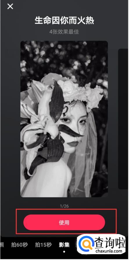 进入之后可以看到影集,通过往左滑动可以查看不同的影集,选择一个合适的点击使用就能应用这个影集了。