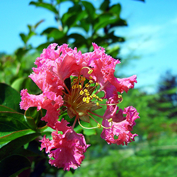在我国古代,很多诗人都用紫薇树来作诗,如:“盛夏绿遮眼,紫薇红满堂”。即使在现代,紫薇也有着好运的含义。紫薇原产于亚洲,广泛栽培于热带、亚热带地区,主要分布在亚洲南部及澳洲北部,在我国的华东、华中、华南及西南地区有大量的分布。紫薇属落叶灌木或小乔木,高3~7米,是我国珍贵的环境保护植物。由于花期时间从6月到9月,所以人们又将它称之为“百日红”,紫薇还有一个有趣的特点:只要轻轻一动树皮,紫薇树树枝就会颤抖不止,所以又叫“痒痒树”。