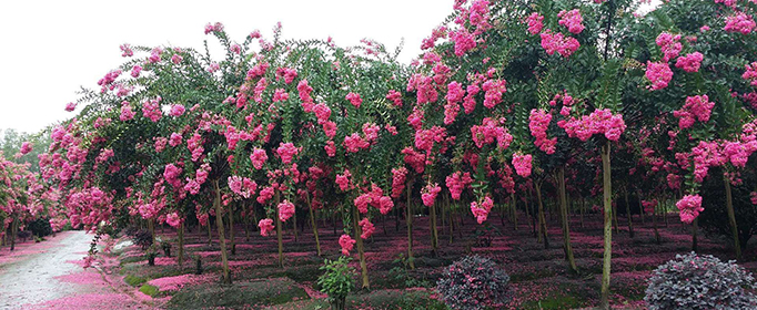 紫薇又称满堂红、百日红,是一种观赏型花木。其树姿优美,花色艳丽,具有净化空气的作用,适用于绿化和园林观赏。因此被大量作为绿化树或庭院植株进行栽培。紫薇的茎干很有特点,年年生表皮又自行褪落,灰色或灰褐色的表皮褪落后,灰白树干格外光滑。