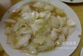 溜白菜,将新鲜白菜煎炒后勾芡做成溜白菜,味道鲜滑,十分下饭