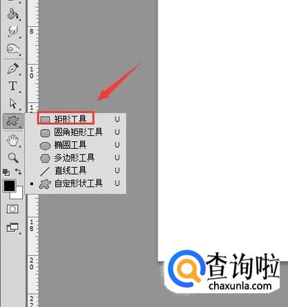 打开ps新建一个文件,然后再在工具箱内找到自定义形状选项,如图所示: