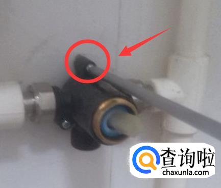 把固定在水阀手柄的底的手柄的螺丝,逆时针用螺丝刀拧松,然后取下来。