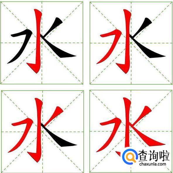 水的笔画顺序是竖钩、横撇、撇、捺。