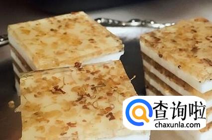 将加了桂花的糖水放在锅上蒸大约五分钟,等凝固后再将椰汁粉浆放在上面再次蒸,之后再蒸马蹄粉混合物,差不多十五分钟后就可以出锅了,等放凉后就可以直接享用了。