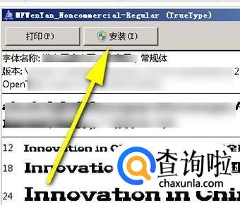 解压完成后,鼠标再双击解压出来的字体文件夹。再双击后缀名是otf的文件,弹出一个页面。在此页面中点击:安装。很快,安装完成。那么,现在电脑上即有了此字体。